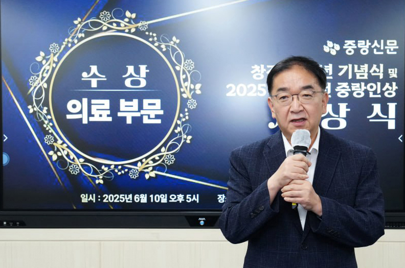 임상혁 녹색병원장이 ㈜중랑신문에서 주최하는 2025 자랑스런 중랑인상 시상식에서 ‘자랑스런 중랑인상’을 수상하였습니다. 자랑스런 중랑인상은 중랑지역에서 구민 화합과 지역발전을 위해 공로가 있는 △정치·행정 △경제 △문화·체육 △봉사 △의료 △교육 등 7개 부문 대상자를 중랑구민으로부터 추천받아 선정합니다. 임상혁 원장은 지역사회 의료 발전과 중랑구 의료복지 증진에 이바지한 공로를 인정받아 ‘의료’ 부문 수상의 영예를 안았습니다. 한편 임상혁 원장은 지난 6년간에 이어 2025년 6월부터 새로운 3년의 병원장 임기를 시작하였습니다. “예상치 못하게 임기가 길어졌습니다. 지금까지 지탱해 올 수 있었던 힘은 모두 병원 직원들의 지지와 많은 노동자 시민의 연대였습니다. 모두 감사합니다.” 임상혁 원장은 지역주민은 물론 노동자, 시민들이 건강하게, 존엄을 지키며 자신의 삶을 영위할 수 있도록 돕는 병원을 만들겠다고 소감을 전했습니다. |