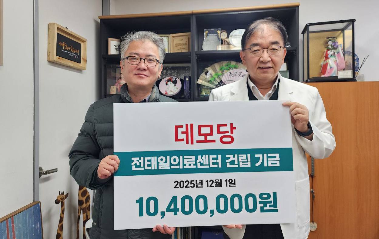 12월 1일 데모당 이은탁 당수가 전태일의료센터 건립기금 1,040만 원을 전해 주셨습니다. 기금의 절반인 520만 원은 데모당 당원들과 이은탁 당수의 페친들(페이스북 친구들)이 불과 4일 만에 온라인을 통해 모아주셨다고 하네요.