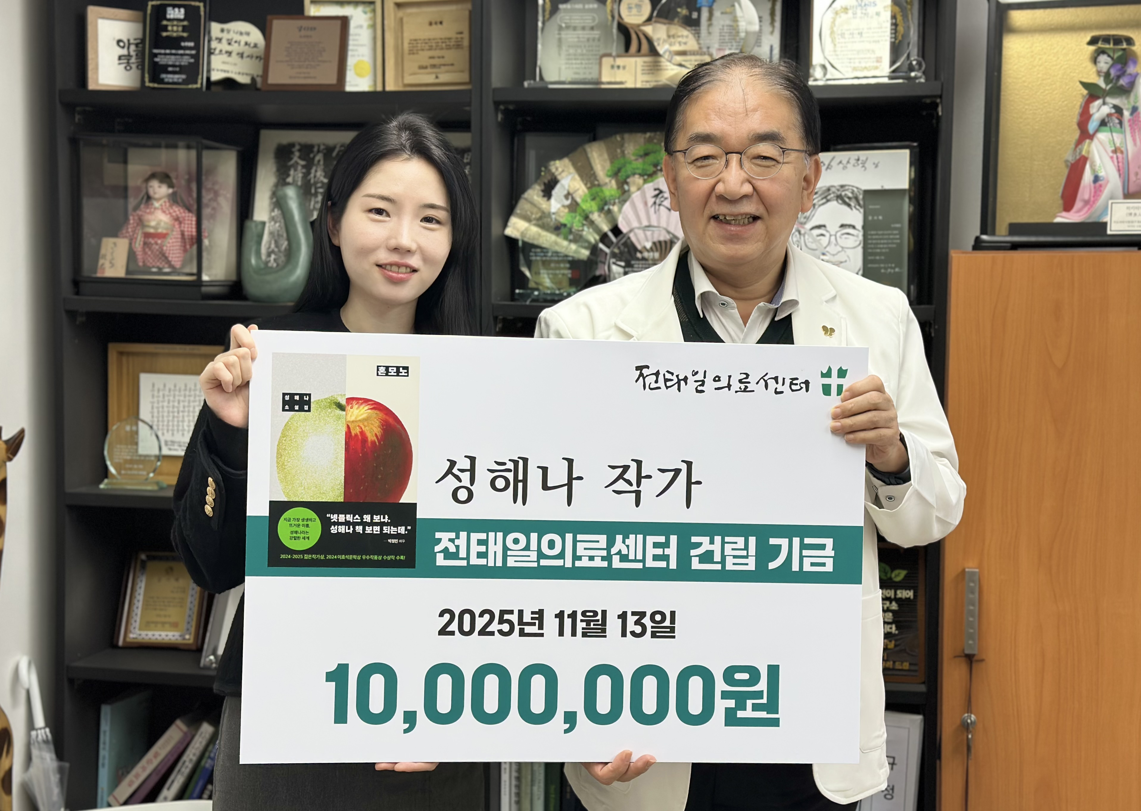 “전태일의료센터 건립 소식은 알고 있었지만 당장 기부할 여력이 되지 못했다.”며 2년여 전을 떠올린 성해나 작가는 작년부터 자기만의 전태일적금을 들기 시작했고, 2025년 11월 13일 만기일이 도래했을 때 의미있게 쓰고 싶었다며 전태일의료센터 건립 벽돌 기금으로 적금액을 전달한 것입니다. “글을 쓰는 것 외에 행동하는 인간으로서 할 수 있는 건 무얼까” 고민해 온 성해나 작가. 그이는 “중학교 때 『전태일 평전』을 읽었는데, 책을 보며 처음으로 눈물을 흘렸다”라며 “가장 존경해 온 인물이자 오래 경모해 온 분, 소외된 이들을 고루 살피고 헌신한 전태일의 시대정신을 오롯이 따르고 싶었다”고 소감을 밝혔습니다. 성해나 작가의 기부 결심을 듣고 어머니가 가장 기뻐하셨다고 합니다. 젊은 시절 야간학교에 다니며 미싱공장에서 오랫동안 일하신 적이 있는 성 작가의 어머니는 “고맙다, 잘했다”며 딸을 응원해 주셨다고 합니다. |
