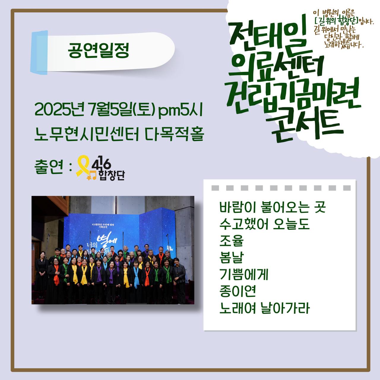 [콘서트] 생명·안전·평화의 노래 '길 위의 합창단'도 전태일의료센터와 함께합니다