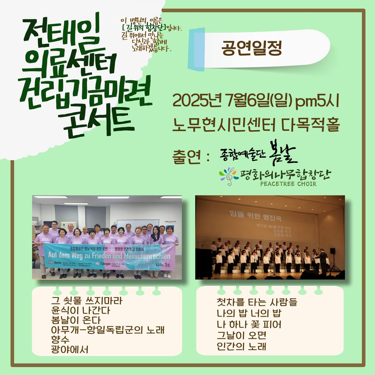주최/주관: 4.16 합창단, 종합예술단 봄날, 평화의나무합창단, 전태일의료센터건립위원회